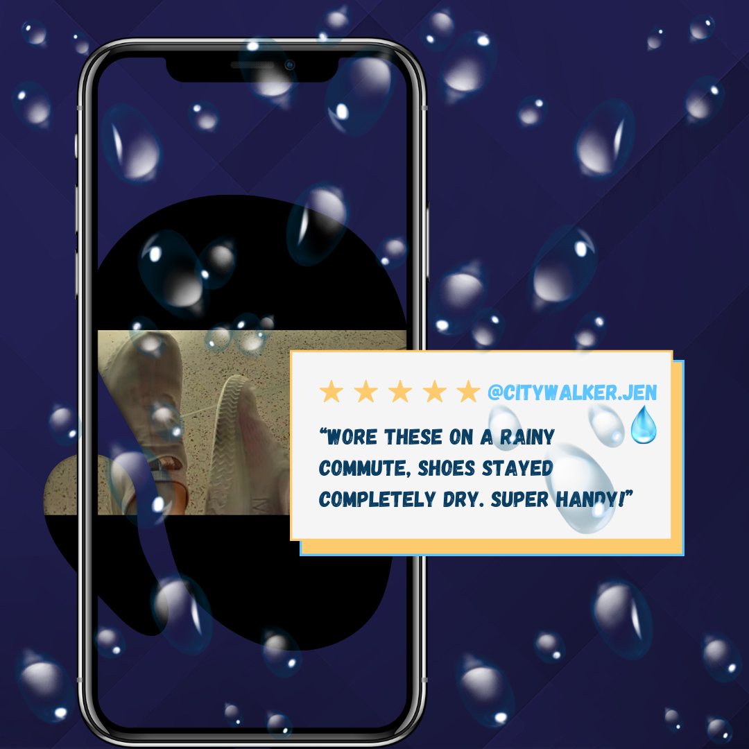 - Ready to go – you’re now protected against rain, mud, and spills. Walk with confidence!